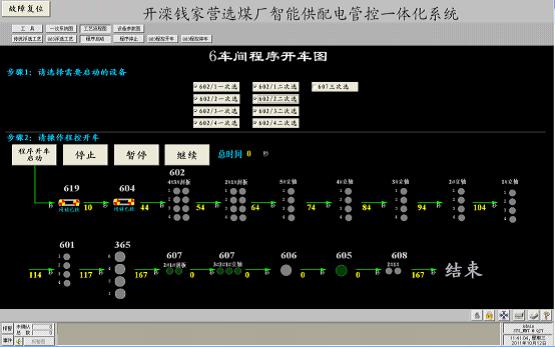 流程控制方式:正常生產(chǎn)時(shí)使用,操作員一鍵啟車,控制系統(tǒng)自動(dòng)按照工藝需求將整條洗煤工藝流程設(shè)備按流程啟車和停車。實(shí)現(xiàn)了對(duì)生產(chǎn)設(shè)備的全面自動(dòng)控制、聯(lián)鎖保護(hù)、運(yùn)行狀態(tài)監(jiān)測等功能;